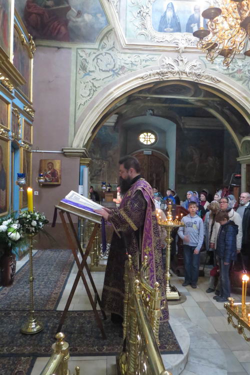 Вечером, в канун пятницы Страстной седмицы, настоятель храма отец Олег, совместно с духовенством храма совершили Утреню с чтением 12-ти Страстных Евангелий