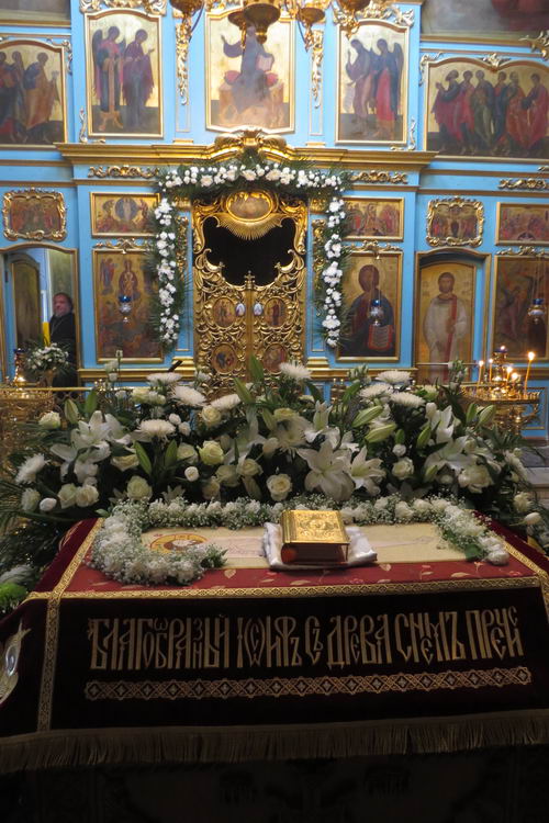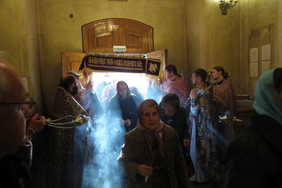 Во время Вечерни Святая Плащаница была обнесена вокруг храма под пение "Святый Боже..." после чего все желающие смогли поклонится Святыне.