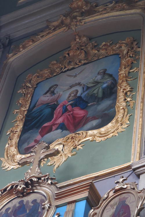 Усилиями жертвователей, благотворителей и прихожан реставрирована настенная живопись над иконостасом с восстановлением позолоты.