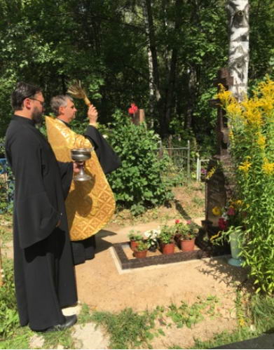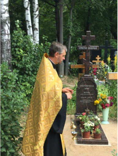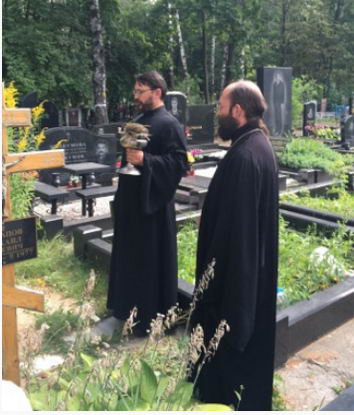 В воскресенье, 8 августа на Котляковском кладбище настоятель храма совершил освящение надгробного креста и заупокойную литию на могиле иеромонаха Иова (Петрова) клирика Царицынского Прихода.