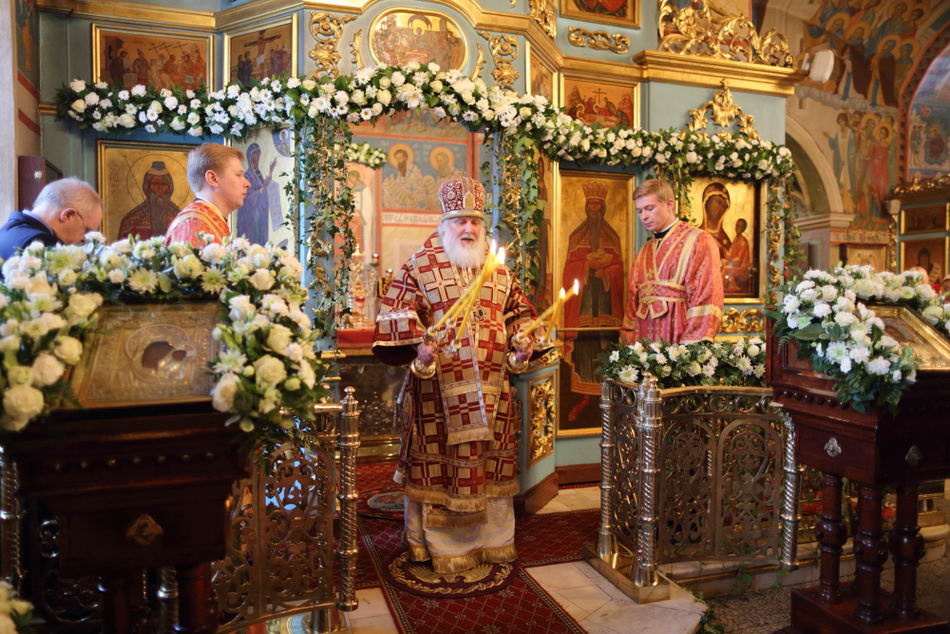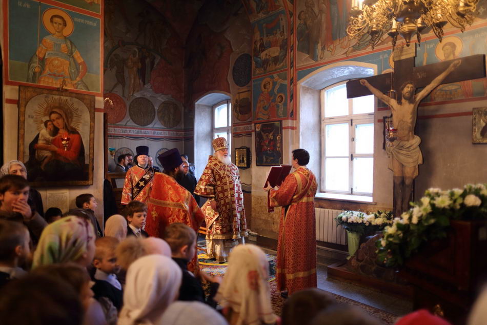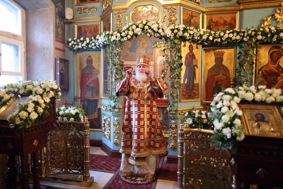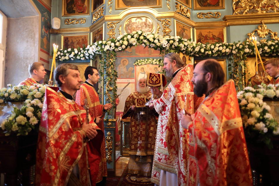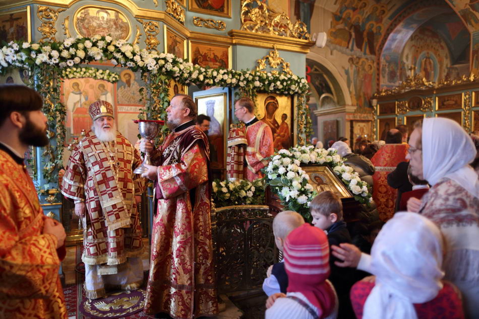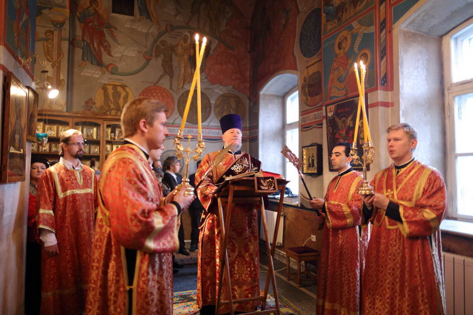 Владыке сослужили настоятель храма протоиерей Олег Корытко, протоиерей Олег Воробьев, благочинный храмов Даниловского церковного округа, священник Роман Федотов, протодиакон Валерий Щеглов, клирик храма Воскресения Христова в Сокольниках, протодиакон Виктор Маценко, клирик храма, и диакон Виталий Гасанов, клирик храма свв. Девяти мучеников Кизических. На запричастном проповедовал священник Сергий Торнаги. По окончании Богослужения выразил сердечную благодарность Высокопреосвященнейшему Владыке Митрополиту за вознесенную молитву в столь значимый для прихода день.