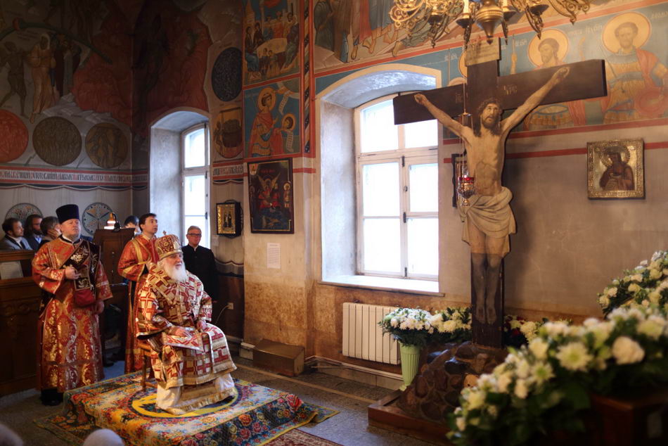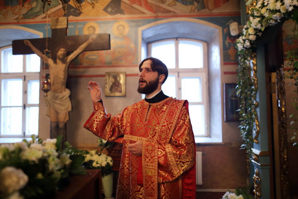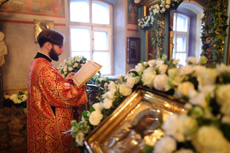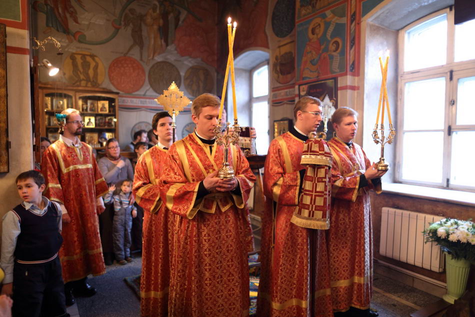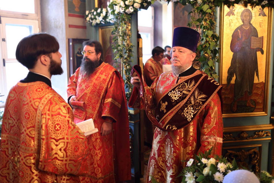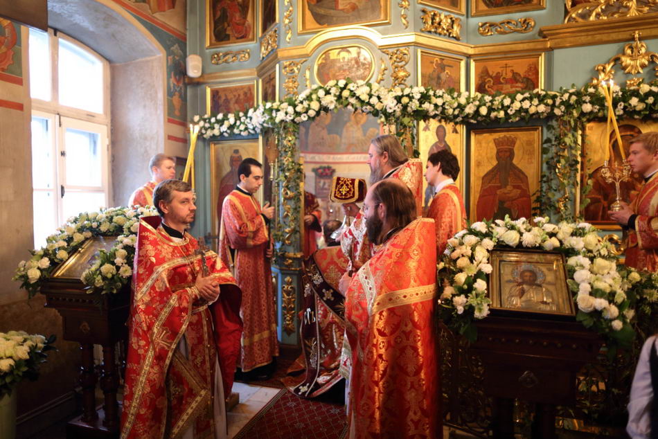 Владыке сослужили настоятель храма протоиерей Олег Корытко, протоиерей Олег Воробьев, благочинный храмов Даниловского церковного округа, священник Роман Федотов, протодиакон Валерий Щеглов, клирик храма Воскресения Христова в Сокольниках, протодиакон Виктор Маценко, клирик храма, и диакон Виталий Гасанов, клирик храма свв. Девяти мучеников Кизических. На запричастном проповедовал священник Сергий Торнаги. По окончании Богослужения выразил сердечную благодарность Высокопреосвященнейшему Владыке Митрополиту за вознесенную молитву в столь значимый для прихода день.