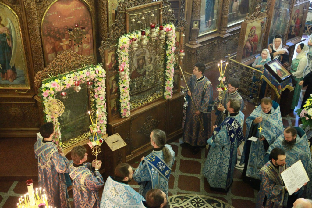 – Почитание чудотворной иконы началось ровно тогда, когда она явилась на стекле в 1993 году. Образ Пресвятой Богородицы «Призри на смирение», прославившийся чудесным явлением — нерукотворным отпечатком на стекле – был принесен в дар Введенскому храму осенью 1992 года схимонахиней Феодорой. Монашеская жизнь в этой обители тогда только начиналась. Мы изготовили специальный киот, и икона была установлена в храме, слева от иконостаса. Образ привлекал к себе внимание верующих своей необычайной красотой, и они часами могли молитвенно простаивать перед ним. Благодаря этой иконе и сам Введенский храм стал известен в городе.