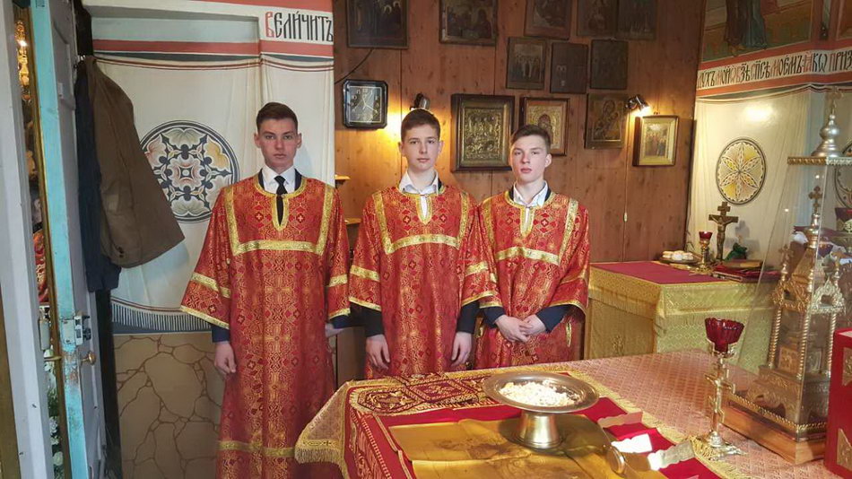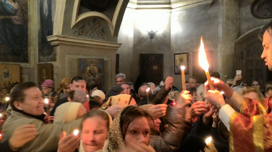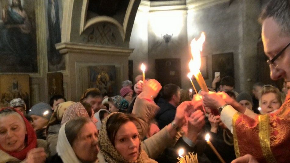 По запричастном стихе отец Олег огласил Пасхальное послание Святейшего Патриарха Кирилла архипастырям, пастырям, монашествующим и всем верным чадам Русской Православной Церкви, а по окончании Богослужения освятил артос и поздравил всех молящихся с Пасхой Христовой.