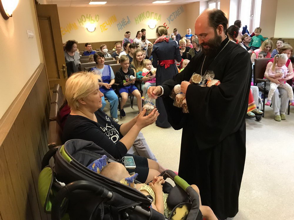 По благословению настоятеля 22 апреля был организован Пасхальный праздник для детей и их родителей проходящих лечение в Детской ЦКБ ФМБА РФ.
