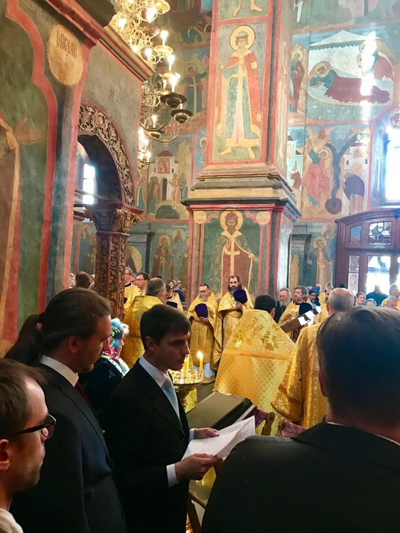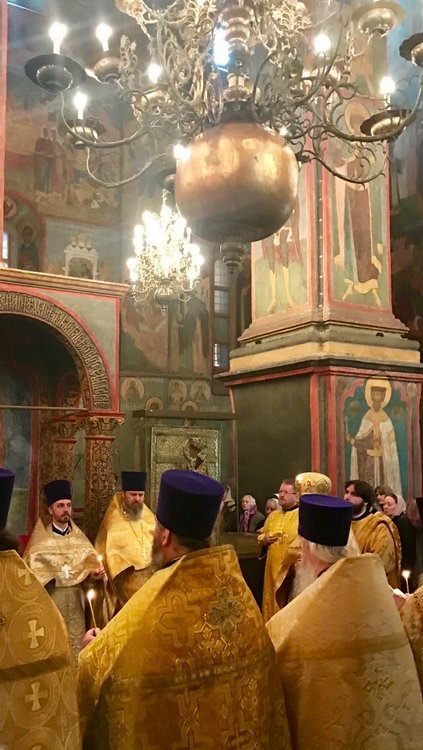 1 июня, в день памяти святых благоверных великого князя Димитрия Донского и великой княгини Евдокии, в инокинях Евфросинии, Высокопреосвященнейший Арсений, Митрополит Истринский, первый викарий Святейшего Патриарха по г. Москве, управляющий Центральным и Южным викариатствами города, совершил Божественную Литургию и чин молебного пения в Архангельском соборе Московского Кремля.