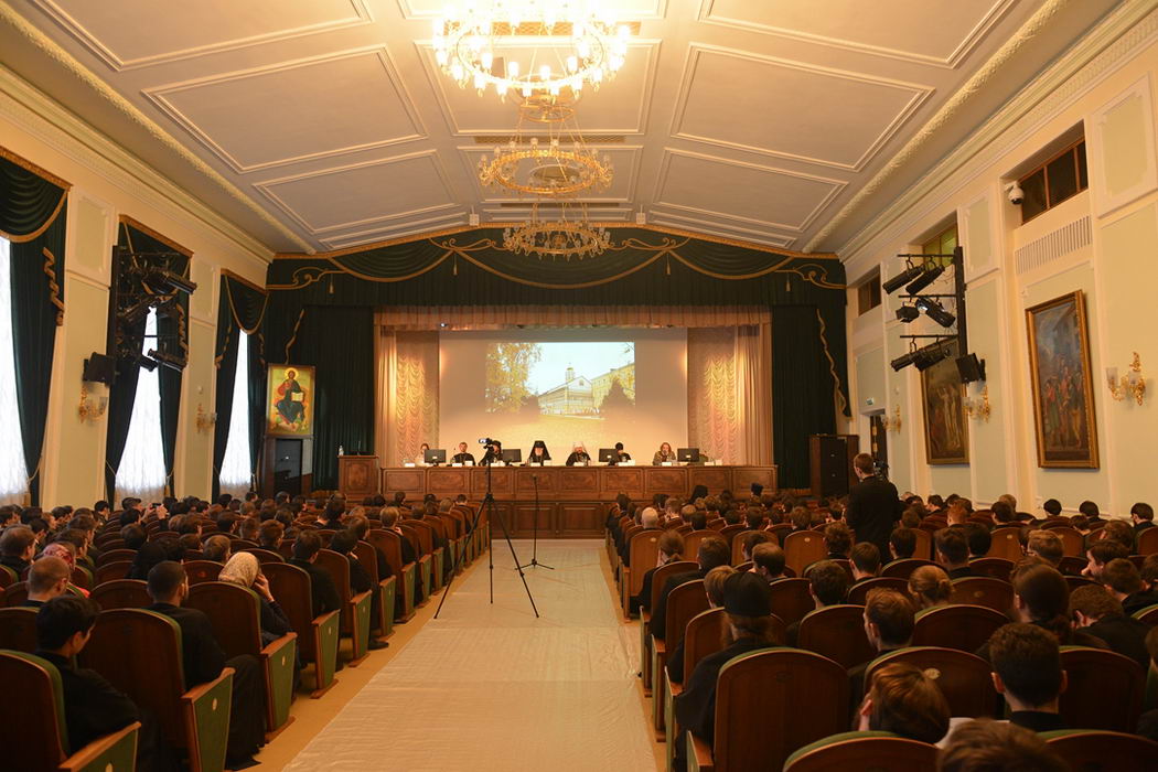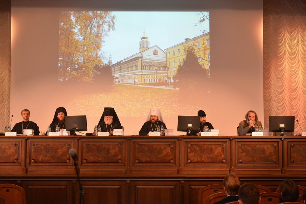 С приветственным словом к участникам мероприятия обратился председатель Учебного комитета Русской Православной Церкви, ректор Московских духовных школ архиепископ Верейский Евгений, затем прозвучало выступление митрополита Волоколамского Илариона, председателя внешних церковных связей Московского Патриархата, ректора Общецерковной аспирантуры и докторантуры.