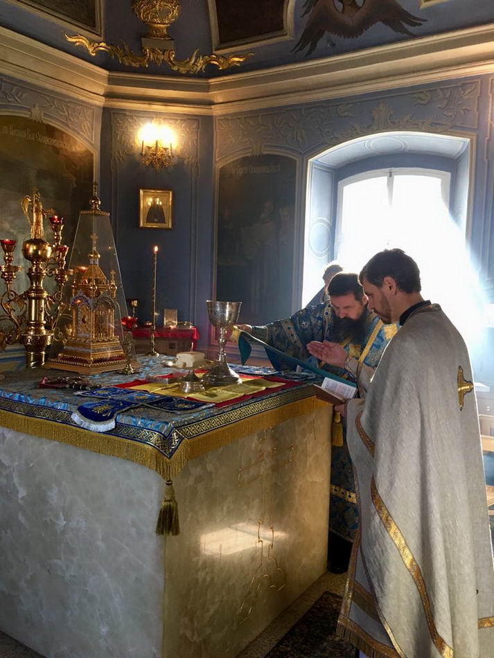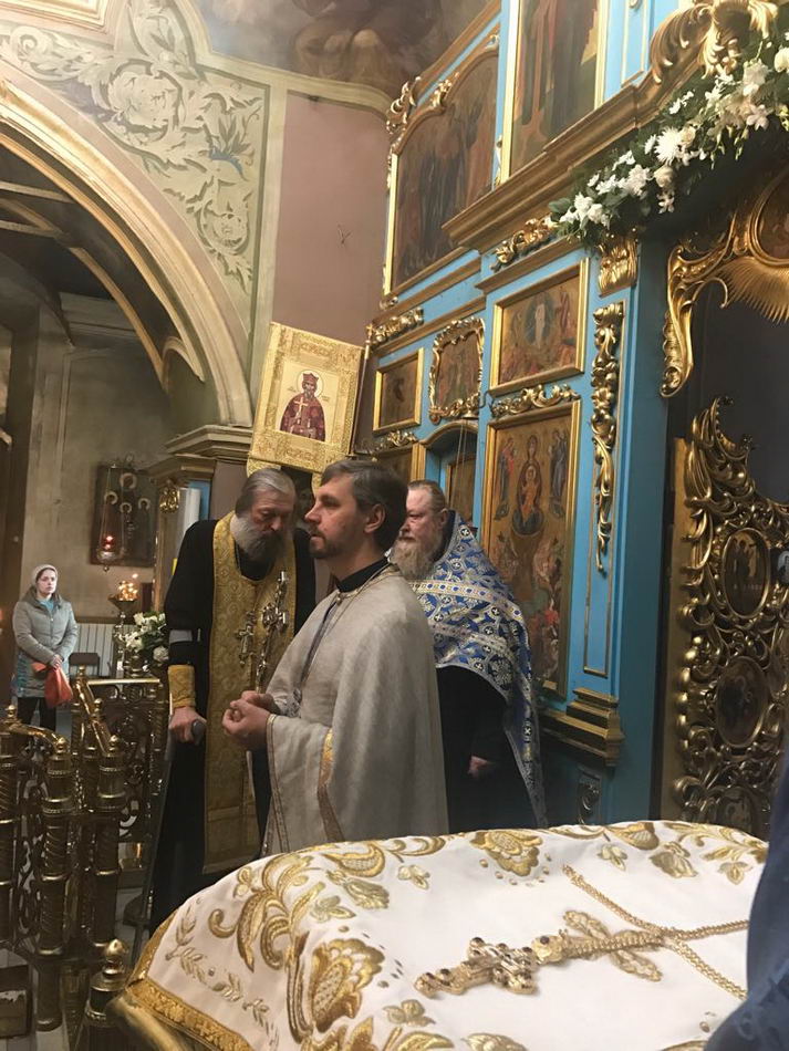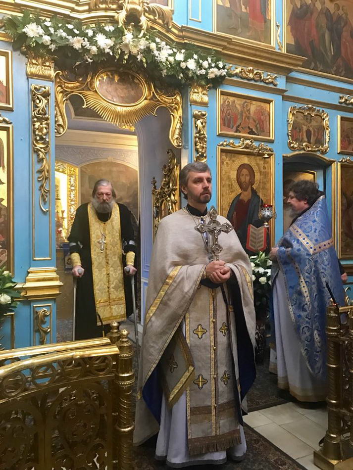 Накануне духовенство храма совершило Всенощное бдение, а в сам день праздника две Божественные литургии в 7 и 10 часов утра. После окончания поздней Литургии отец Олег совершил славление Божией Матери, а также сердечно поздравил протоиерея Александра Лаврина с 25-летием иерейской хиротонии и грядущим 60-летием со дня рождения, передав от духовенства, служителей алтаря и церковного совета на молитвенную память протоиерейский крест.