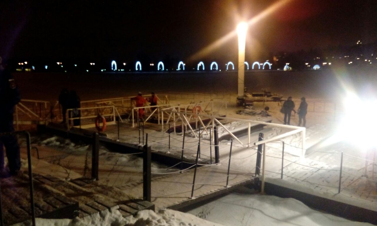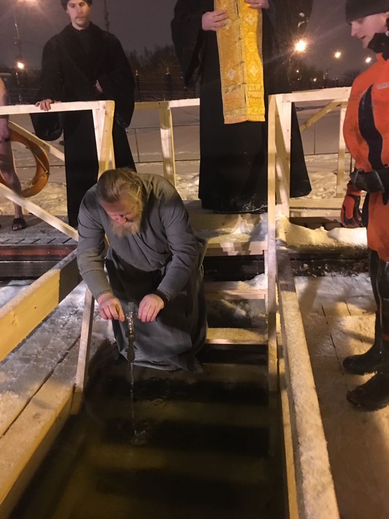 По традиции вечером 18 января духовенство храма освящало спициально обустроенный прорубь на Царицынских прудах и вместе с многочисленными желающими приняло участие в крещенских купаниях.