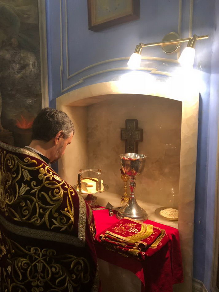 По запричастном стихе отец Олег огласил Пасхальное послание Святейшего Патриарха Кирилла архипастырям, пастырям, монашествующим и всем верным чадам Русской Православной Церкви, а по окончании Богослужения освятил артос и поздравил всех молящихся с Пасхой Христовой.