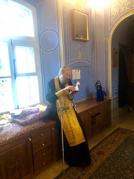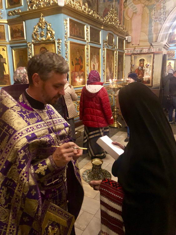Накануне во время Всенощного бдения отец Олег тепло и сердечно поздравил монахиню Калерию (Светличную) с 70-летием.