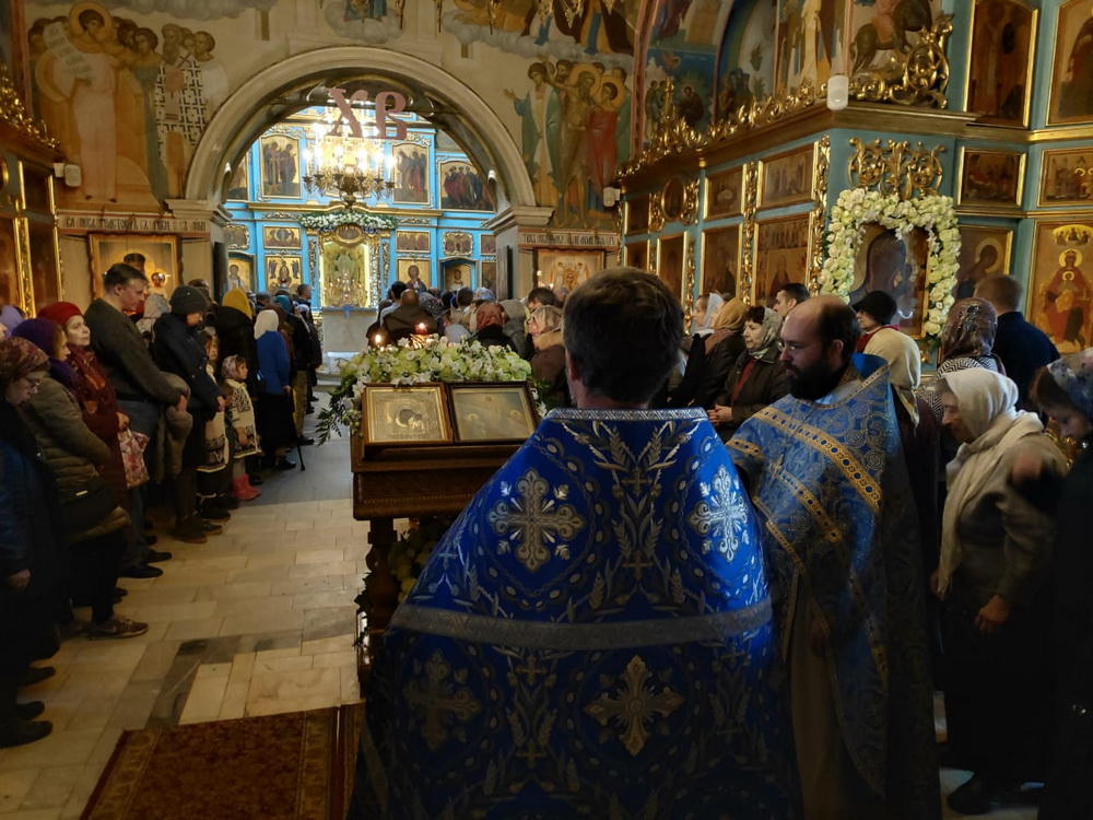4 ноября, в день празднования «Казанской» иконы Пресвятой Богородицы наш храм молитвенно отмечает престольный праздник: правый придел освящен в честь чудотворного образа Заступницы Усердной. Накануне духовенство храма совершило Всенощное бдение, а в сам день праздника две Божественные литургии в 7 и 10 часов утра. После окончания поздней Литургии отец Олег совершил славление Божией Матери и тепло поздравил всех собравшихся.