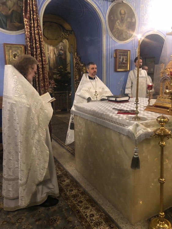 7 января 2019года, в праздник Рождества Господа Бога и Спаса нашего Иисуса Христа, в нашем храме традиционно совершались три Божественные литургии святителя Василия Великого. Первую совершили настоятель храма протоиерей Олег Корытко, иерей Евгений Батаев, священник Роман Федотов и протодиакон Виктор Маценко. За Литургией было оглашено послание Его Святейшества, Святейшего Патриарха Московского и всея Руси КИРИЛЛА. После окончания богослужения отец Олег тепло приветствовал прихожан и гостей храма, поздравив их с великим и спасительным праздником Рождества Христова.