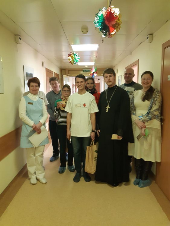 9 января священник Василий Лапкин и диакон Александр Зуев, во исполнение благословения настоятеля, посетили с Рождественскими поздравлениями пациентов и персонал Городской клинической больницы N 12 им. Буянова. Совместно с волонтёрами службы ‘Милосердия’ и воспитанниками православной гимназии «Живоносный Источник» священнослужители посетили больных в палатах, пропели колядки , передали рождественские подарки. По традиции отец Василий поздравил с праздником Рождества Христова главного врача больницы.