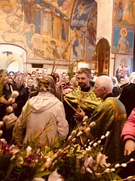 21 апреля, в праздник Входа Господня в Иерусалим, были совершены две Божественные Литургии в Царицынском храме, а также в храме на Котляковском кладбище и храме в КЦСО "Царицынский", храме великомученика Пантелеимона в ФНКЦ. Вечером накануне во время Всенощного бдения настоятель совершил традиционное освящение вербы. После окончания Поздней Литургии клирик нашего храма протодиакон Виктор Маценко принимал поздравления с высокой Патриаршей наградой - правом ношения камилавки.
