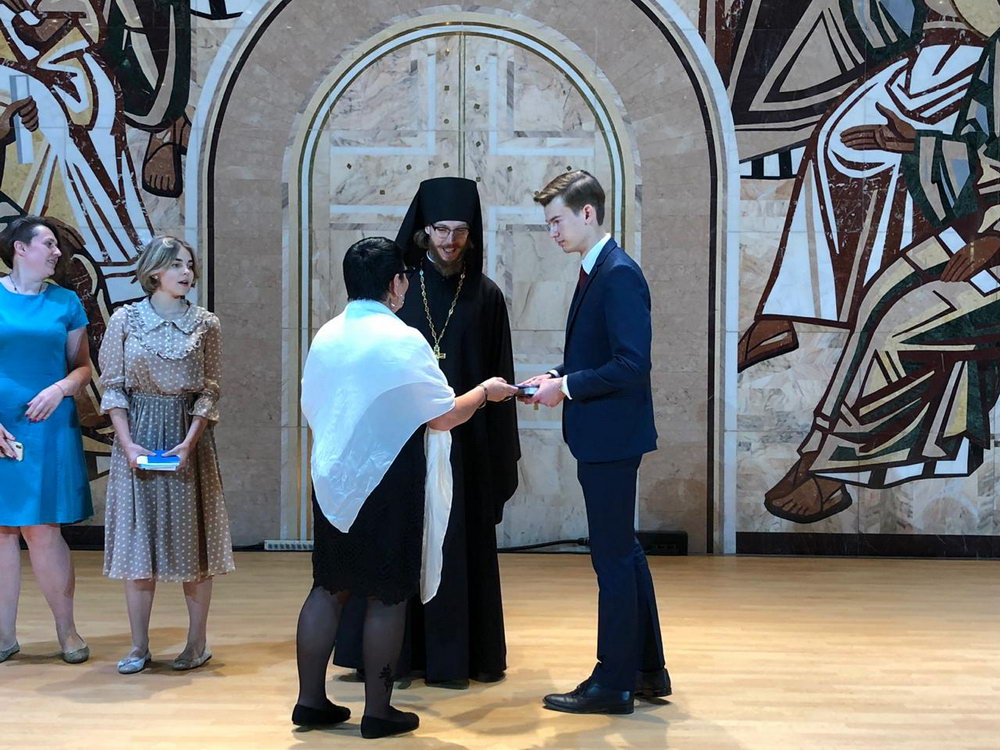 Затем в Зале церковных соборов Храма Христа Спасителя состоялось торжественное вручение аттестатов выпускникам.