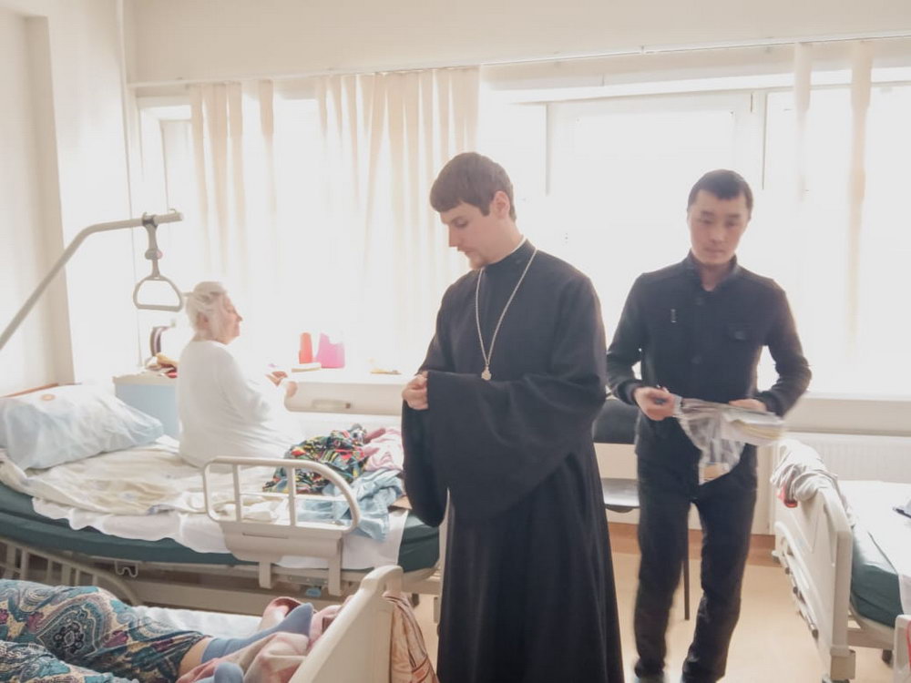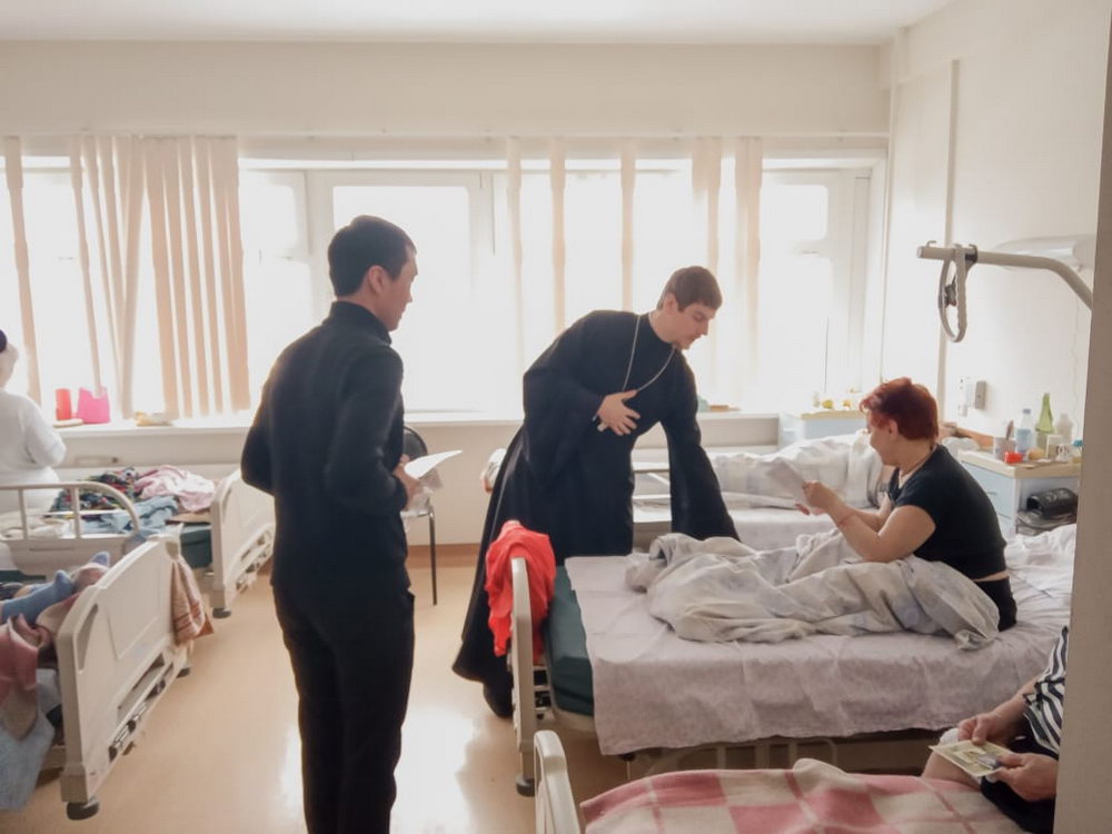 По благословению настоятеля храма, 9 января священник Василий Лапкин и диакон Александр Зуев посетили стационар Городской клинической больницы # 12 и поздравили руководство, врачей и пациентов больницы. Традиционно огромную помощь в поздравлениях и раздаче приготовленных подарков оказали волонтеры.