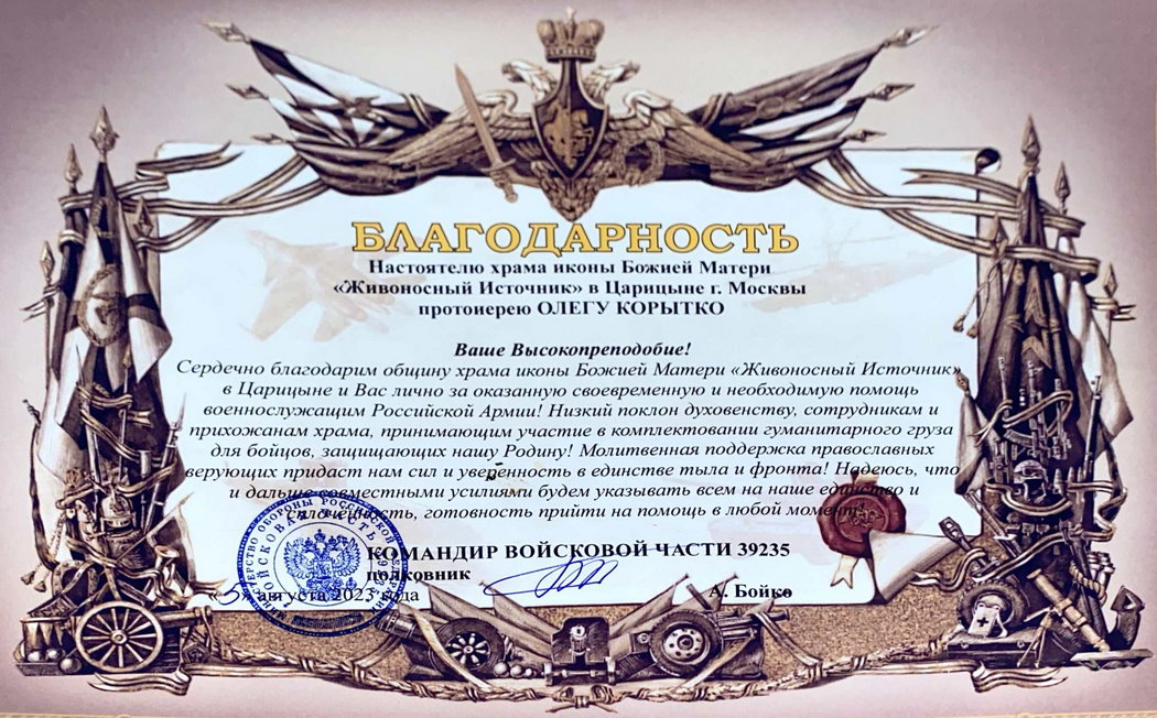 Гуманитарная помощь Прихода военным СВО