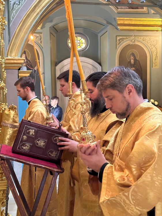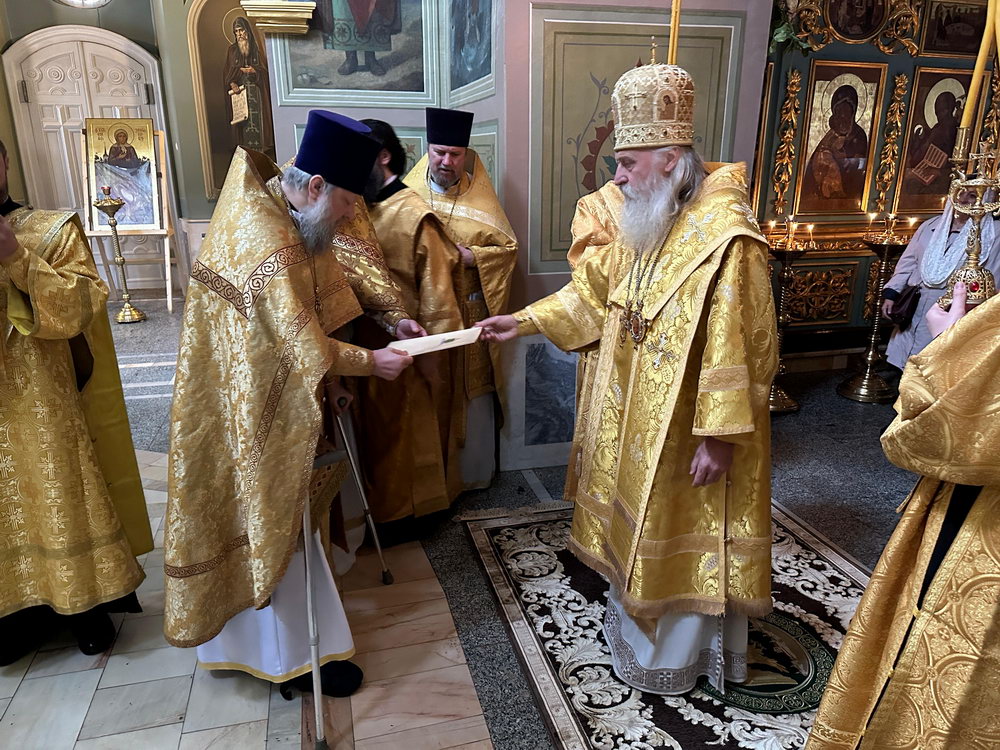 После окончания богослужения Владыка митрополит огласил поздравление Святейшего Патриарха направленное настоятелю храма ко Дню Небесного покровителя.