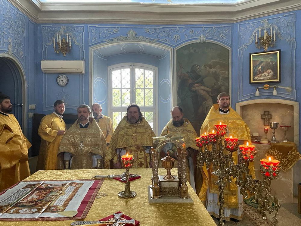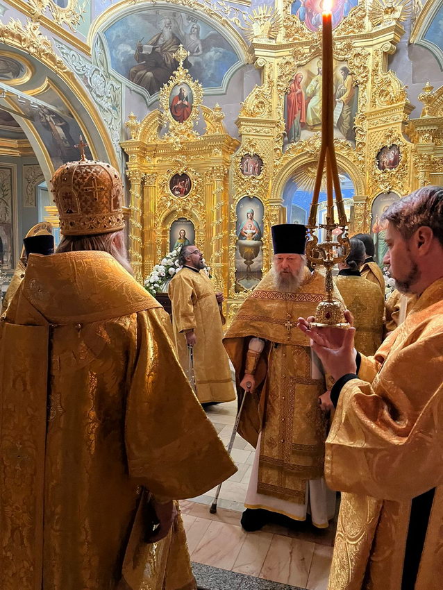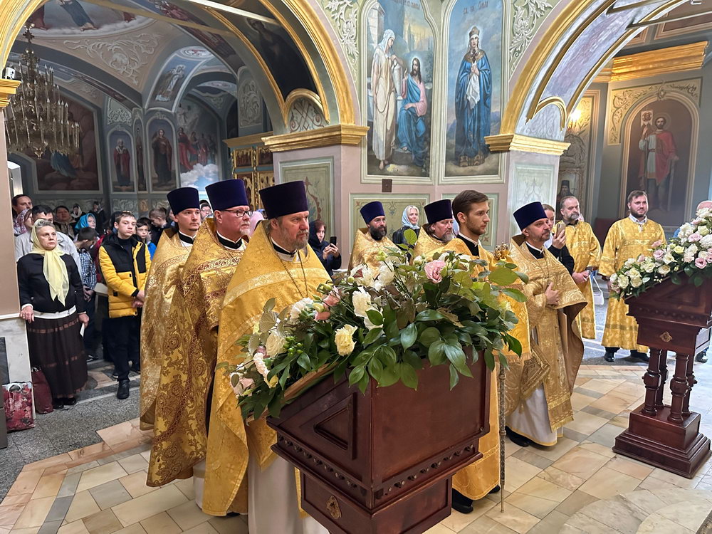 Его Высокопреосвященству сослужили Благочинный храмов Даниловского округа протоиерей Олег Воробьев, Благочинный храмов Донского округа протоиерей Александр Фарковец, настоятель храма протоиерей Олег Корытко, духовник Южного Викариатство, настоятель храма Покрова Богородицы в Орехово-Борисово Южное протоиерей Константин Харитошкин, клирик храма святителя Николая в Бирюлево священник Илия Фарковец, духовенство храма.