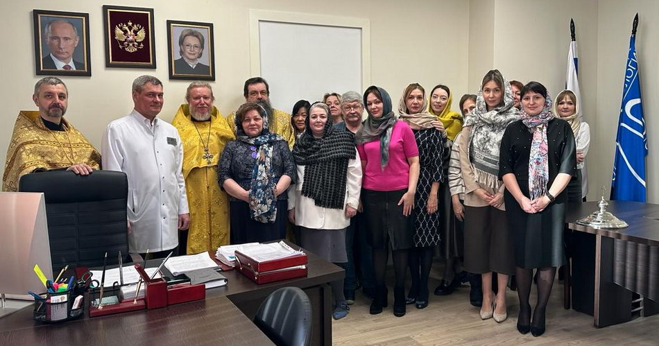 В завершение встречи, прошедшей в дружеской атмосфере, отец Олег пожелал руководству и сотрудникам НИИ крепкого здоровья и успехов в трудах.