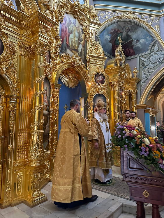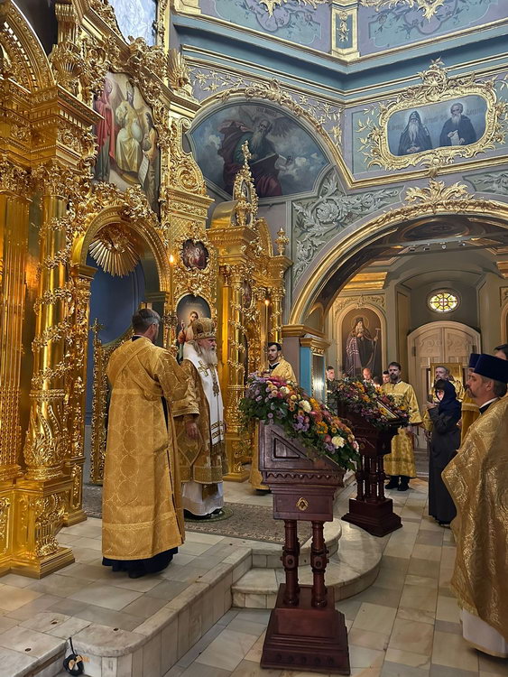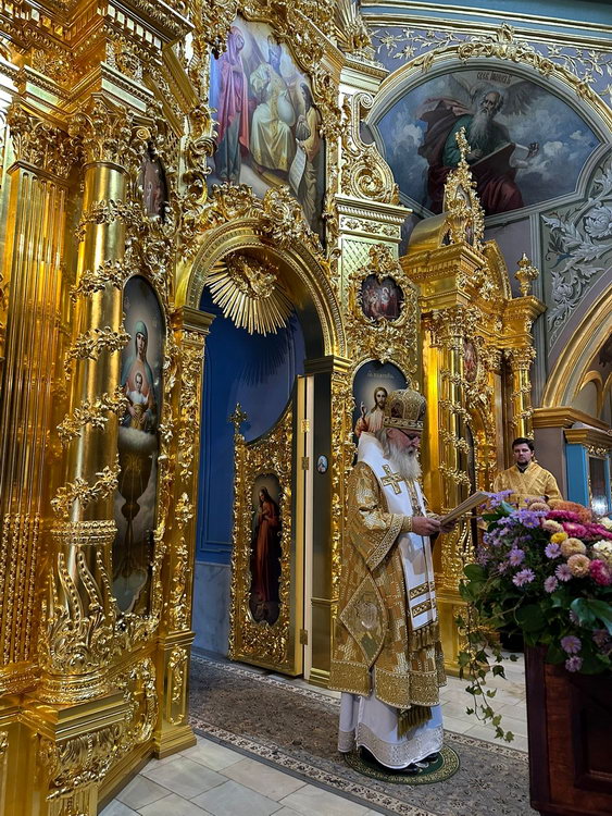 По окончании богослужения Владыка митрополит огласил поздравительный адрес от Святейшего Патриарха к настоятелю храма в День его Небесного покровителя и обратился к собравшимся со словом назидания.