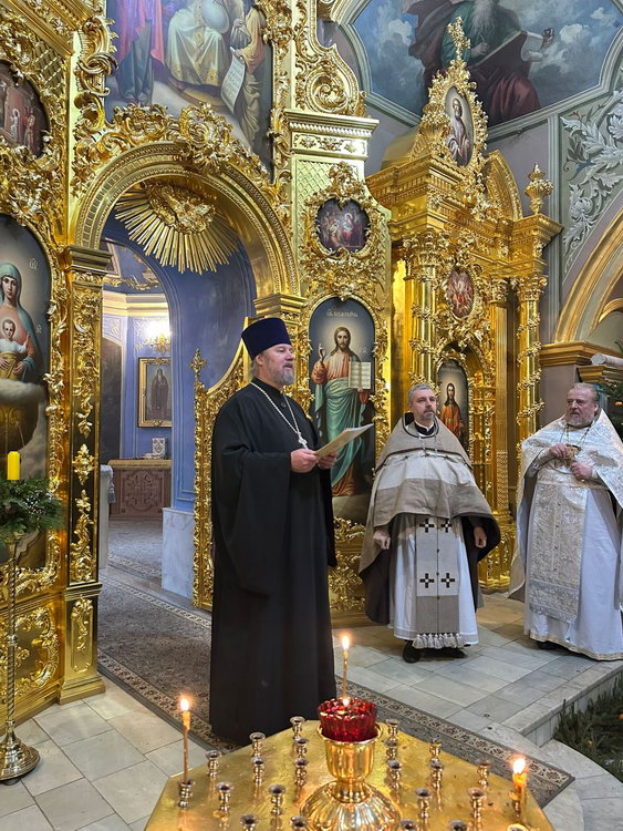 В воскресенье, 12 января благочинный храмов Даниловского округа города Москва протоиерей Олег Воробьев посетил Царицынский Приход. По окончании Божественной Литургии отец Благочинный тепло поздравил настоятеля нашего храма с знаменательной датой - 20-летием работы в Московской Патриархии и огласил памятный адрес Святейшего Патриарха Московского и всея Руси Кирилла.