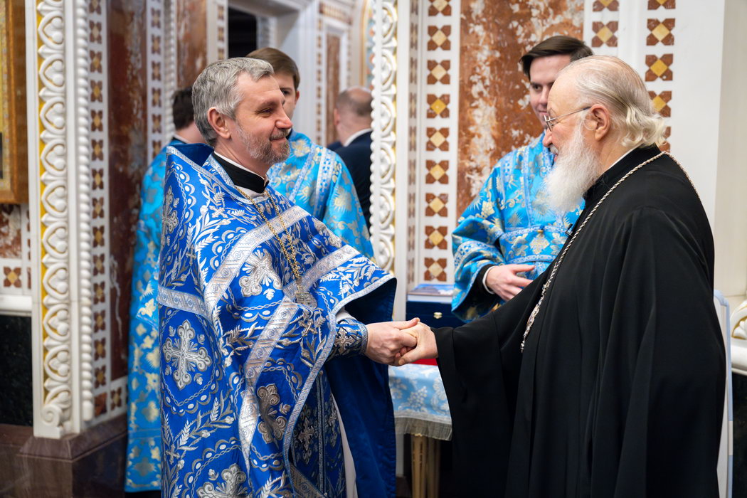 15 февраля 2025 года, в праздник Сретения Господа Бога и Спаса нашего Иисуса Христа, Святейший Патриарх Московский и всея Руси Кирилл совершил Божественную литургию в кафедральном соборном Храме Христа Спасителя в Москве. Настоятель нашего храма сослужил Его Святейшеству за праздничный богослужением.