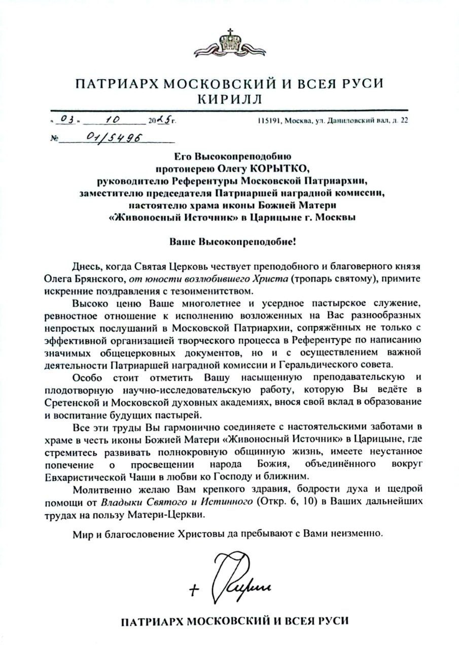 После окончания Литургии был совершен праздничный молебен и славление преподобному Олегу Брянскому. Председатель синодального отдела по социальному служению протоиерей Михаил Потокин огласил поздравление настоятелю от Святейшего Патриарха Московского и всея Руси КИРИЛЛА.
