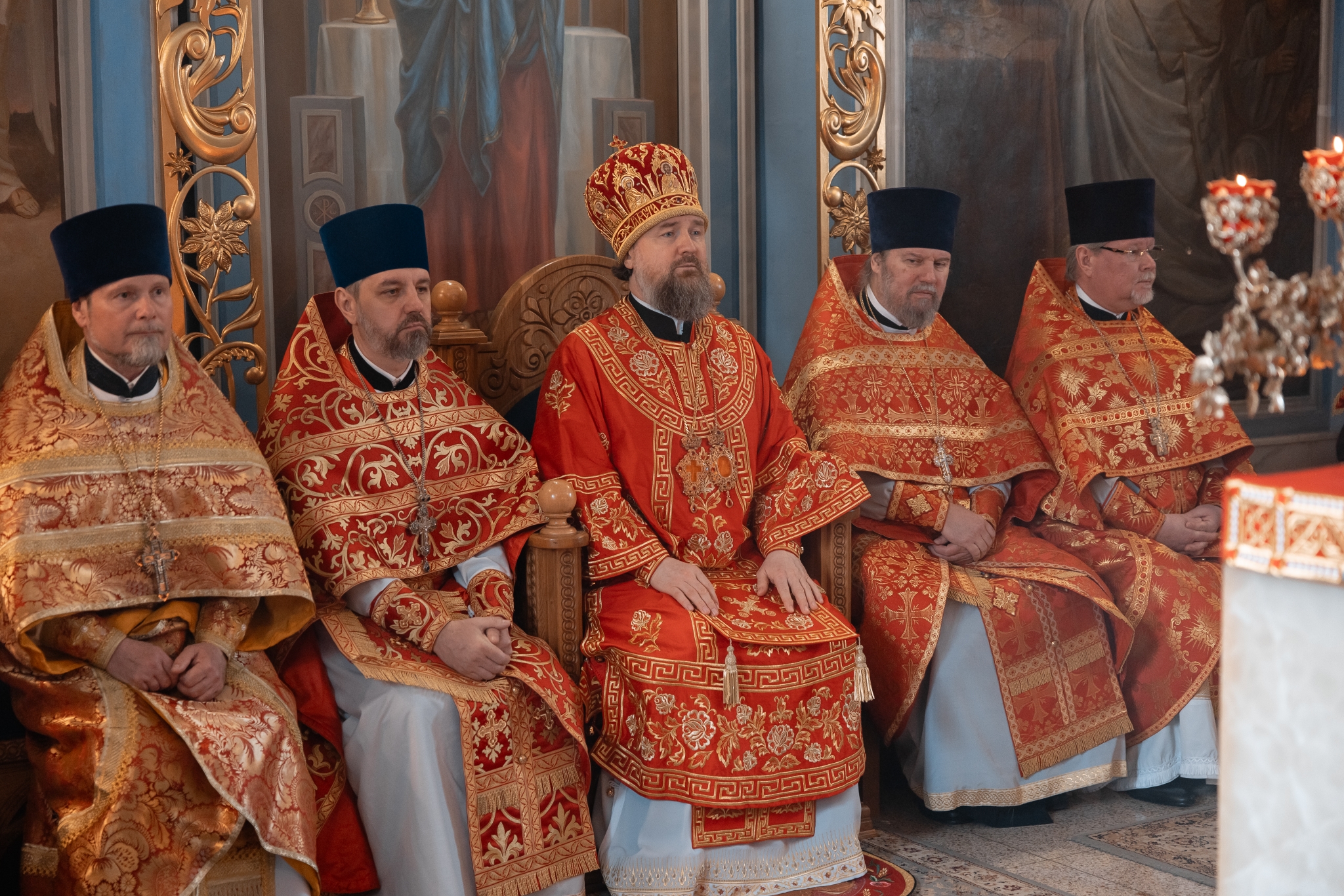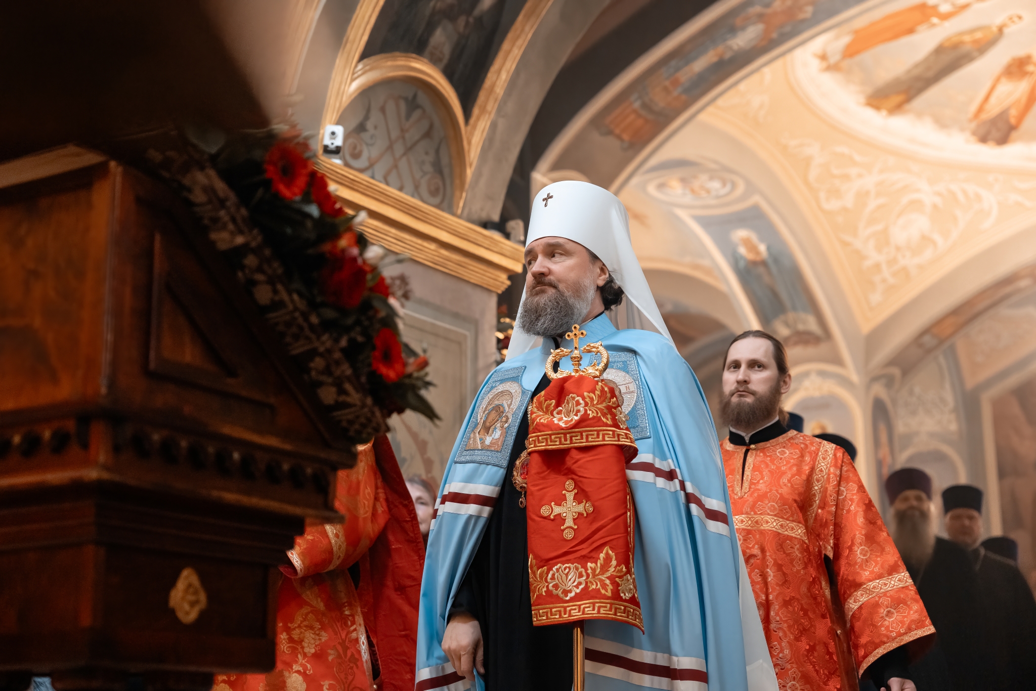 Его Высокопреосвященству сослужили благочинный Даниловского округа протоиерей Олег Воробьев, благочинный Донского округа протоиерей Александр Фарковец, настоятель храма протоиерей Олег Корытко, благочинный храмов Долгопруднинского округа Сергиево-Посадской епархии протоиерей Андрей Хмызов, благочинный Егорьевского округа Коломенской епархии протоиерей Сергий Кожевников и приглашенное духовенство.