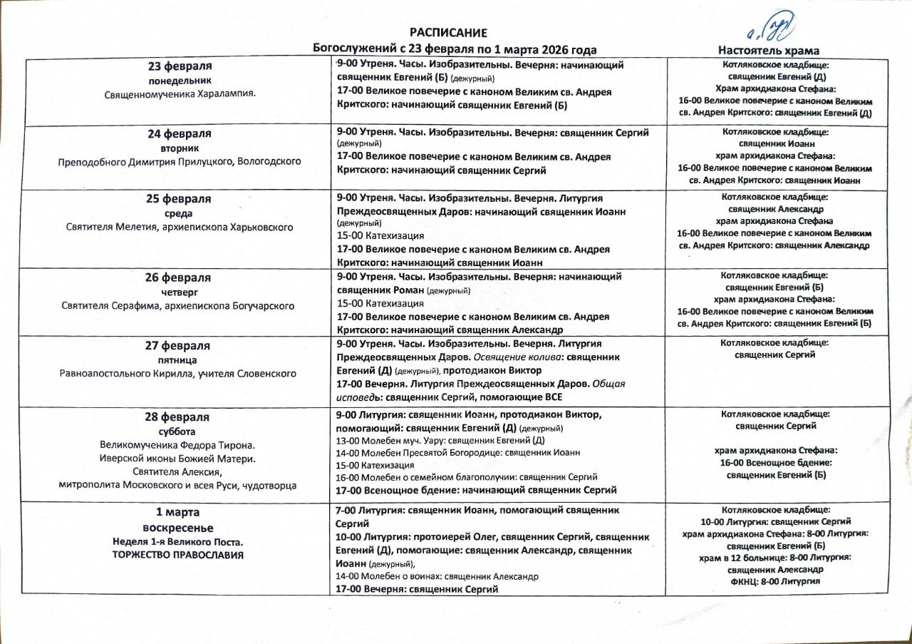 — Священник Сергий (дежурный)Великое повечерие с каноном Великим св. Андрея Критского
