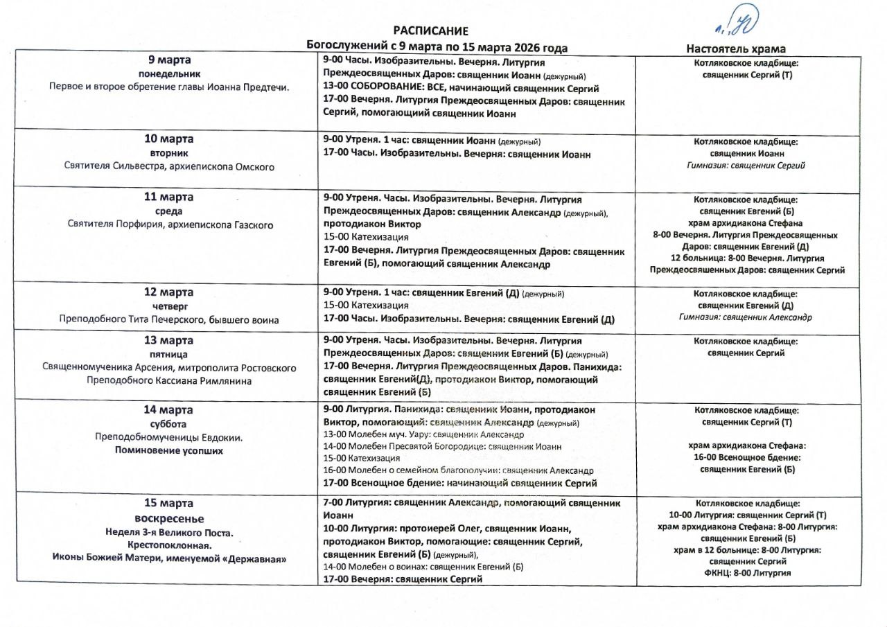 — Священник Евгений (Б) (дежурный)Вечерня. Литургия Преждеосвященных Даров. Панихида